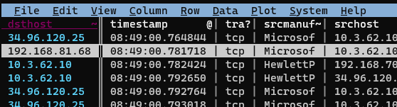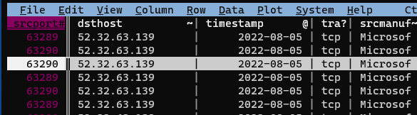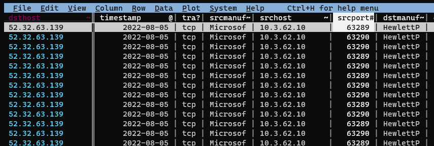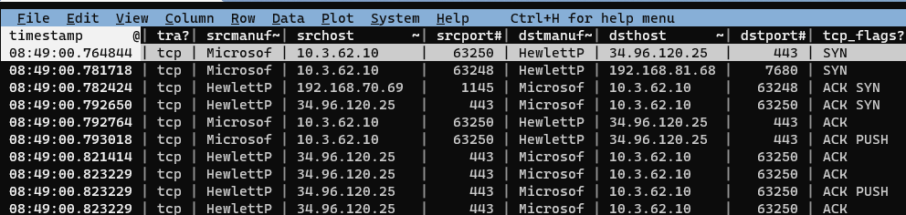 First we’ll open “Duo-Wireshark.pcap” in VisiData: visidata .\Duo-Wireshark.pcap: