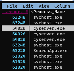 - Find the executable name by cross-referencing the Wireshark capture with the ProcMon capture based on the source port of the connection.