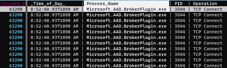 Now we’ll again join these two sheets with an inner join: &, and in the resulting joined sheet we finally see that the executable name responsbile for the Duo connections is “Microsoft.AAD.BrokerPlugin.exe”: